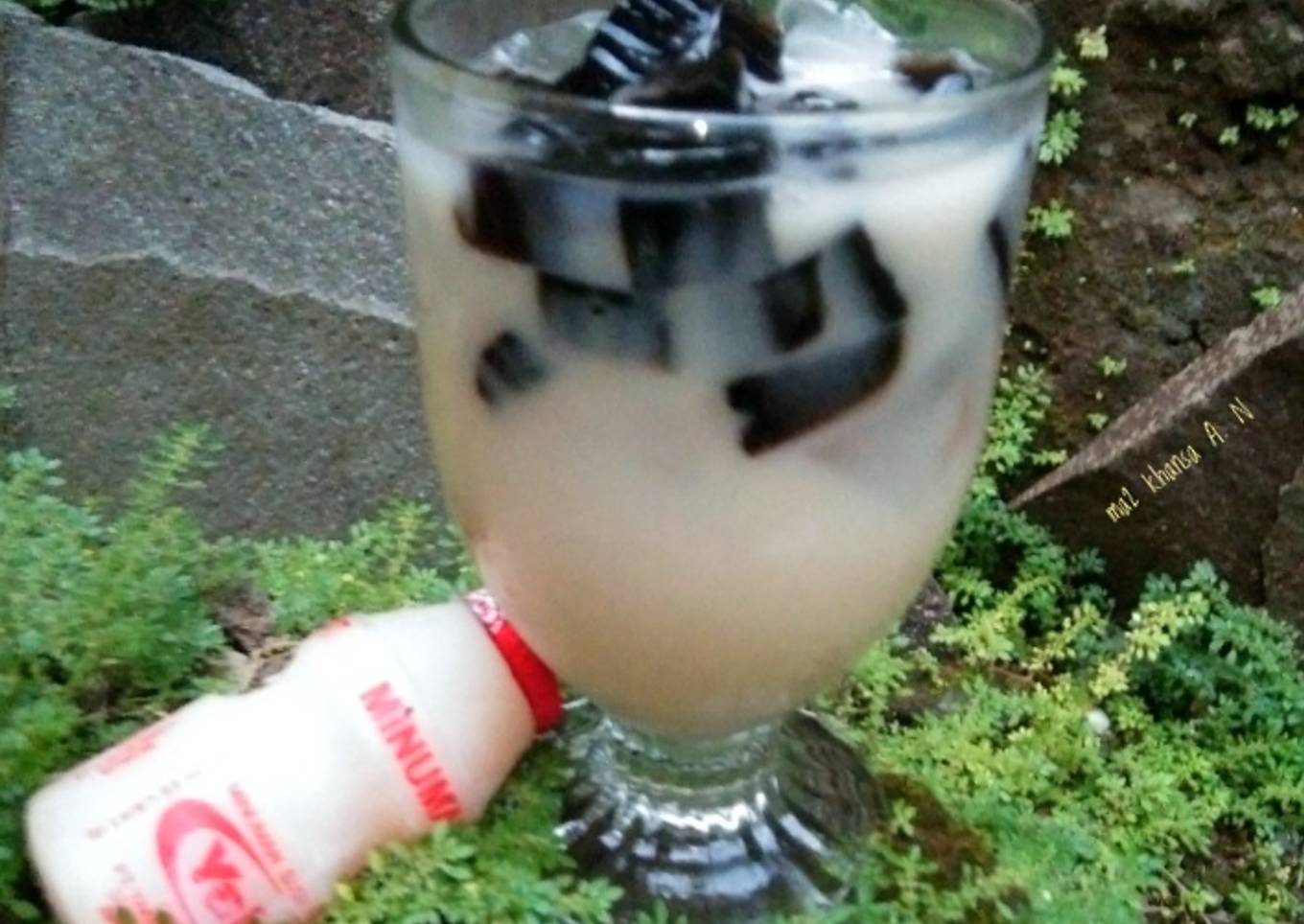 - Dalam gelas masukan es batu + cincau tuang yakult. Siap di nikmati utk berbuka puasa.๐๐๐