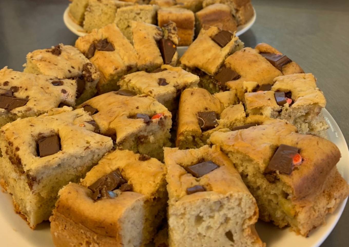 - Aduk atau mixer hingga pisang lumat dan tercampur dengan rata. Lalu siapkan loyang oles dengan mentega atau bisa di lapisan kertas kue jika ada. Kemudian tuang adonan kedalam loyang, ratakan dan beri potongan coklat di atasnya jika suka.