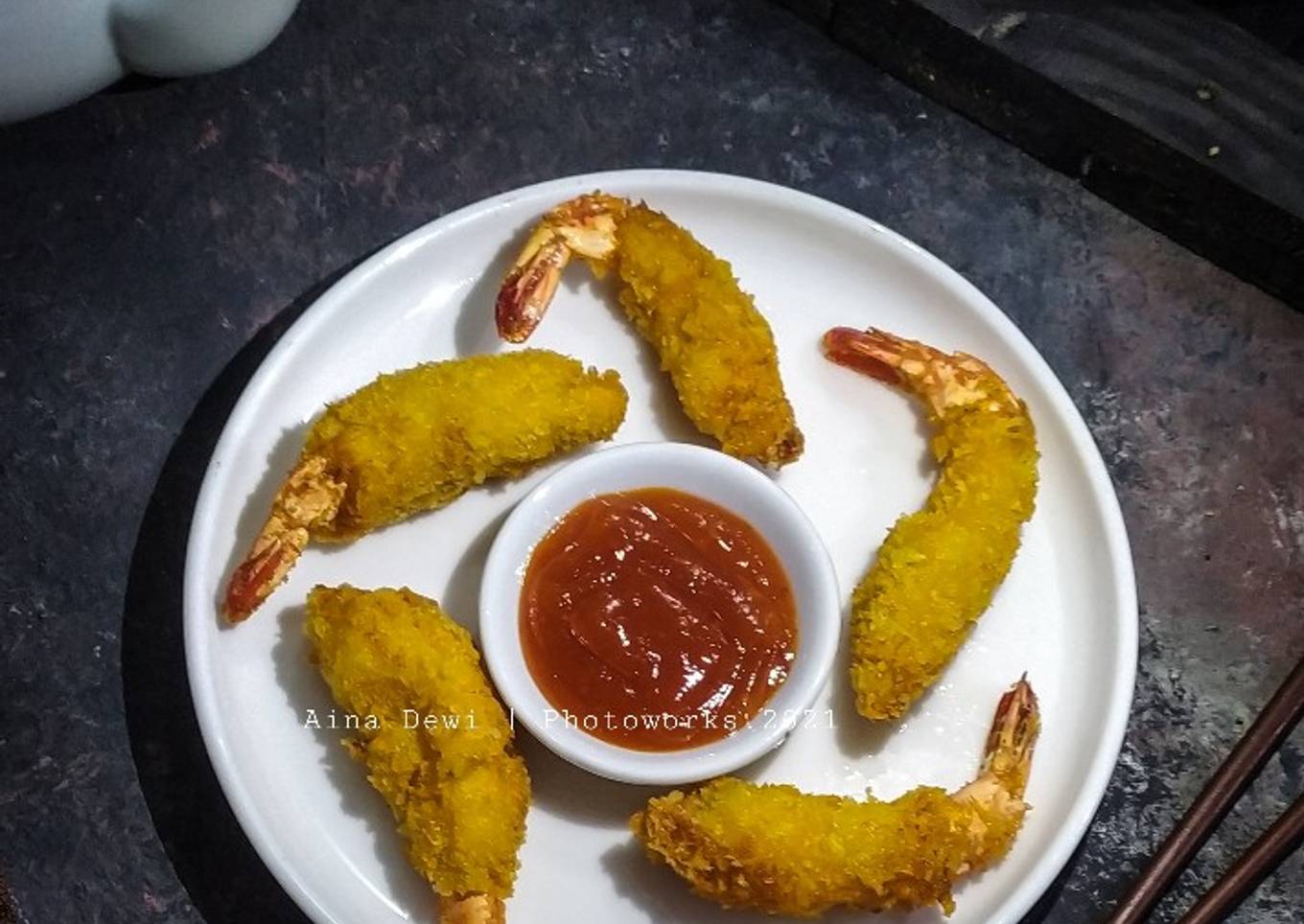- Celupkan udang dalam adonan cair, kemudian baluri tepung roti. Diamkan dulu dalam chiller min 1 jam sebelum di goreng. Boleh juga masuk freezer, tahan lebih lama. Sebelum di goreng pindahkan dulu ke chiller, min 1 jam sebelum di goreng.