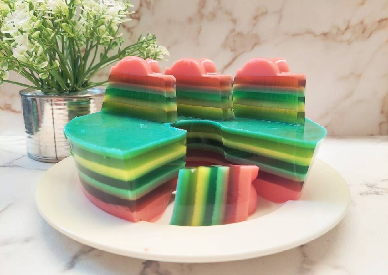 - Madak krmbali adonan putih sampai mwndidih, matikan api. Ambil 1 ce dong sayjr adonan, beri warna hijau, aduk tjanf perlahan dengan sendok ke atas lapisan terakbir, biarkan agak beku. Lakuman hal yang sama sampai adonan habis.