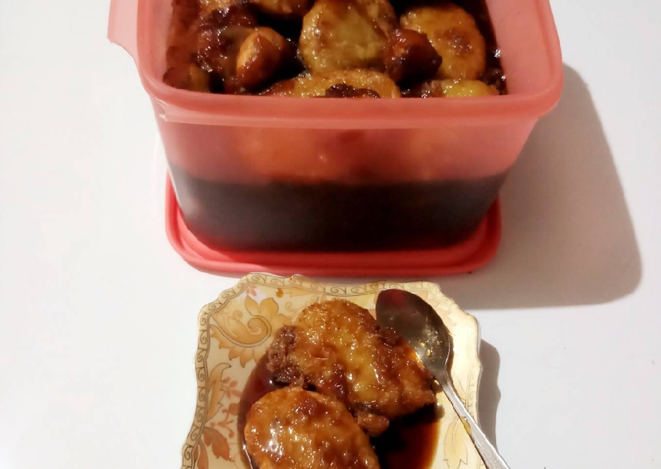 - Masak air gula kemudian saring tambahkan bila suka durian kemudian masak kembali...tuang air gula diatas ubi yg telah ditata dlm wadah.Biarkan dingjn...bisa lgsung disantap ataupun di diamkan dlm kulkas