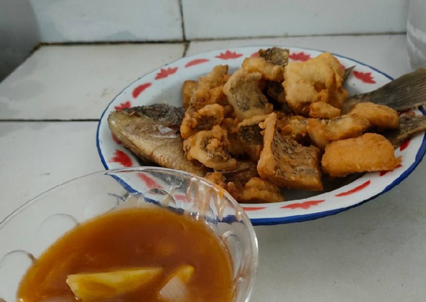 - Potong fillet Gurami bentuk dadu, lalu marinasi dengan ketumbar, bawang putih, garam, jeruk nipis.