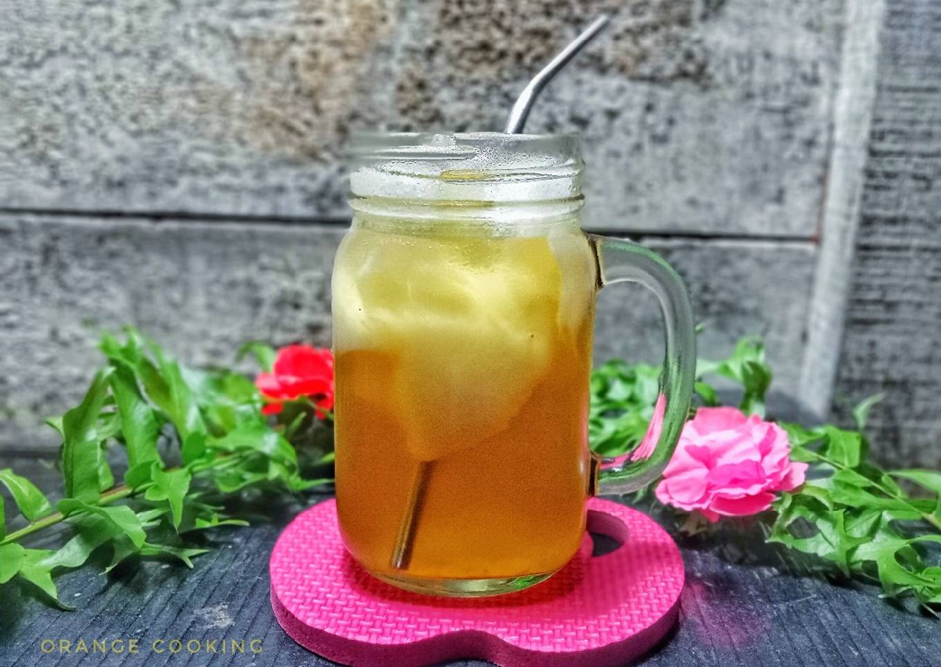 - Siapkan gelas tuangi sirup gula,beri air kelapa muda dan terakhir masukkan daging kelapa muda dan es batu